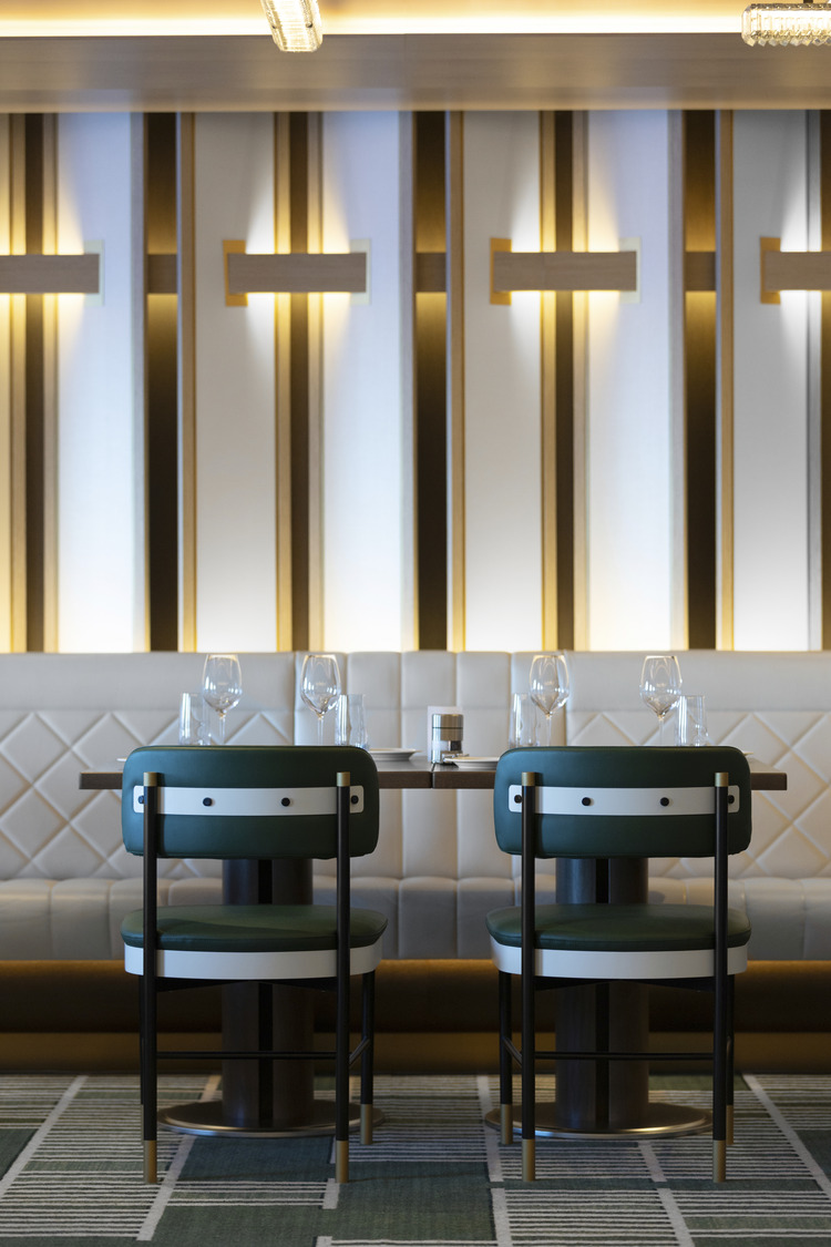 The layout of the Commodore Room is meticulously planned to enhance the sense of intimacy and refinement. Strategically placed divider screens creating moments of surprise and privacy. As guests step into the Commodore Room, they are greeted with the unmistakable aura of fine dining, elevated to match the caliber of Aqua’s specialty restaurants. With its attention to detail and evocative design, the Commodore Room invites diners to embark on a culinary journey imbued with the timeless elegance of seafaring tradition.