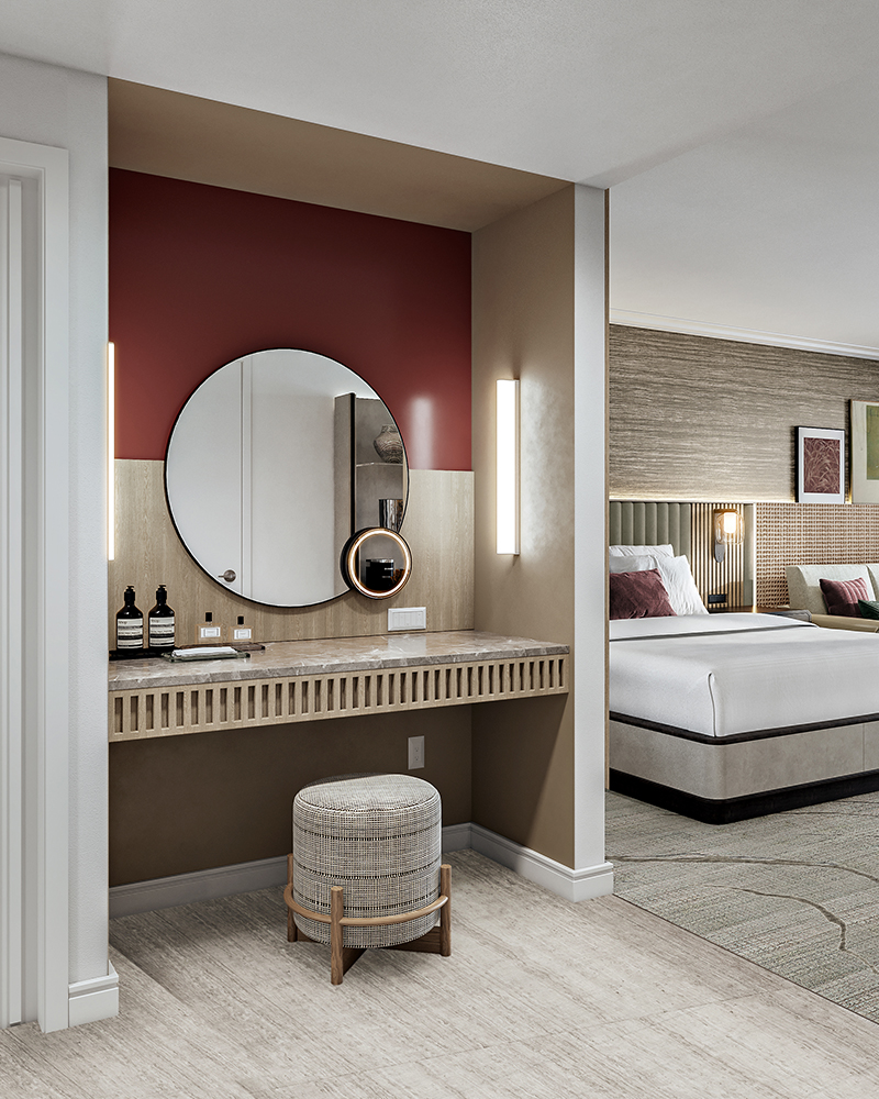 From the outset, the goal was to reinvigorate the original design intent of celebrating the unmatched beauty and tranquility of the Sonoran desert—where the land meets the sky. DADO uses simple design interventions to update key high-touch elements and relies on color and material palettes that reinforce a sense of place—the unique character of what makes this resort special, memorable and unlike any other.