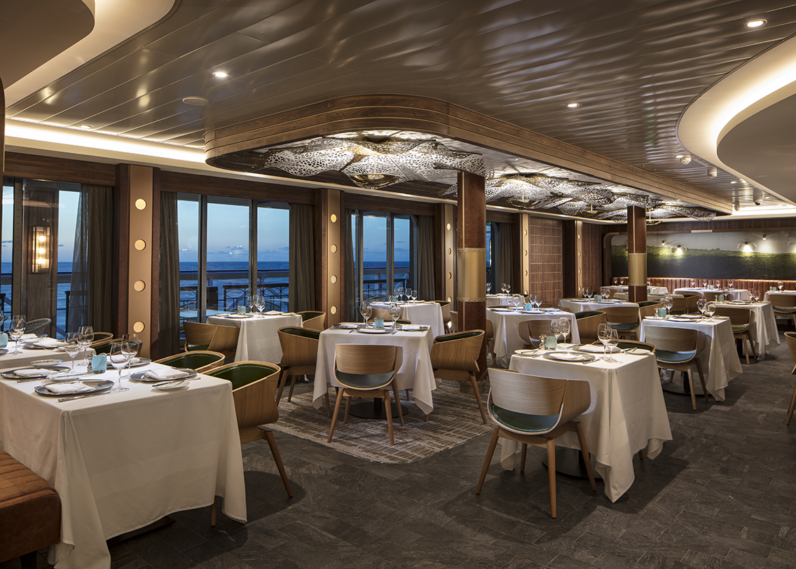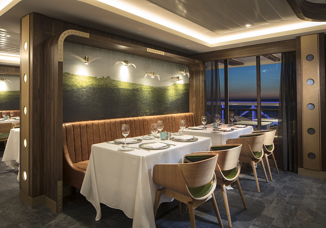 Ocean Blue transcends the run-of-the-mill culinary destination and transports patrons to a cosmopolitan, Pacific Northwest-inspired haven. Spanning 1,950 square feet, with seating capacity for 94 people, Ocean Blue opts for sea-kissed symbolism over thematically nautical design by highlighting elements of the water.