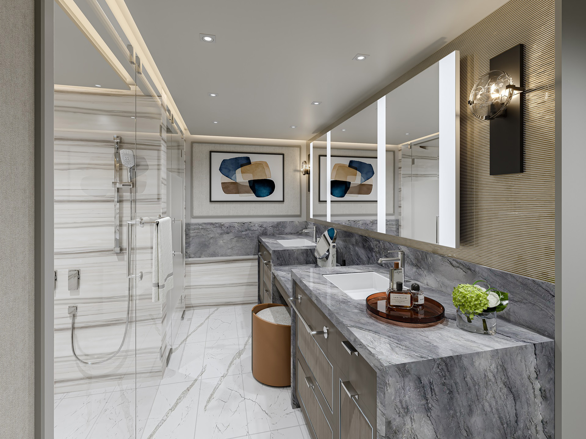 With their contemporary, sophisticated design, the Loft Suites conjure a high-end residential guest experience in Lower Manhattan. The double-height space and extraordinary window wall create a jaw-dropping view, while the materials, colors and fabrics have all been selected for their contemporary, sophisticated feel. A muted palette, tone-on-tone subtlety and clean, bold lines all contribute to the suiteās timelessness while remaining very much of its time.